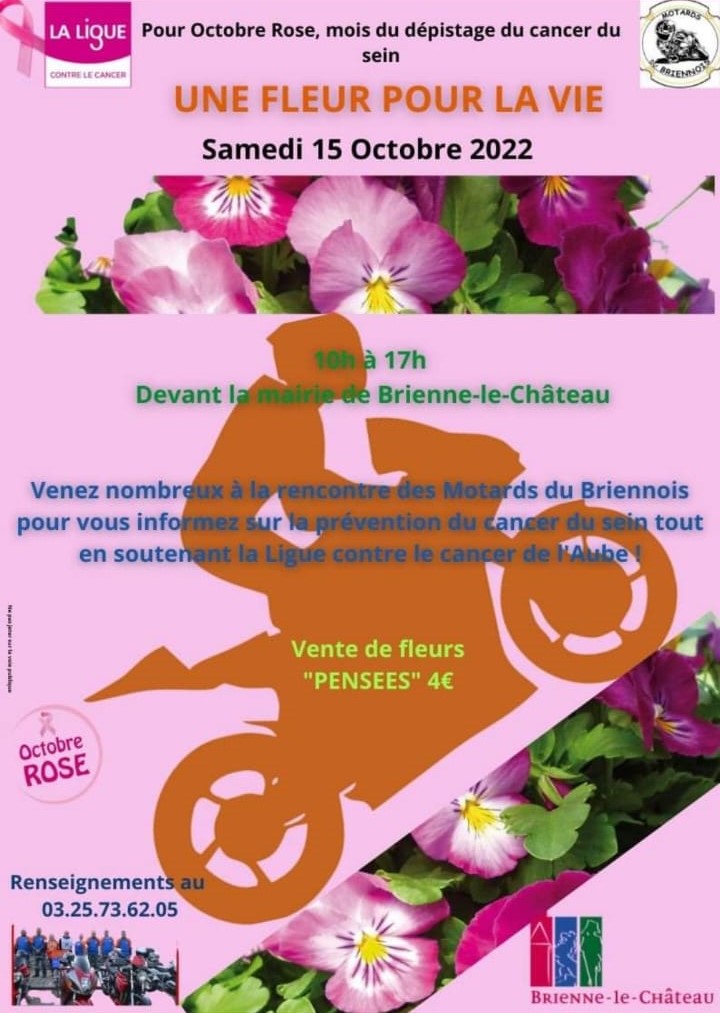 NOUS INVITE À BRIENNE LE CHÂTEAU SUR L’ÉVÈNEMENT OCTOBRE ROSE «UNE FLEUR POUR LA VIE»